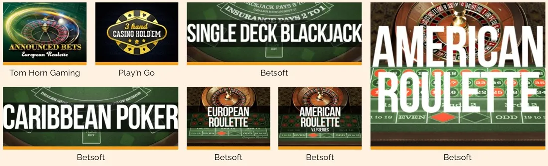 Avec près de 300 titres, cette section est également l’une des plus imposantes de cette plateforme. Elle englobe tous les jeux habituels (blackjack, roulette, baccarat, poker, etc).